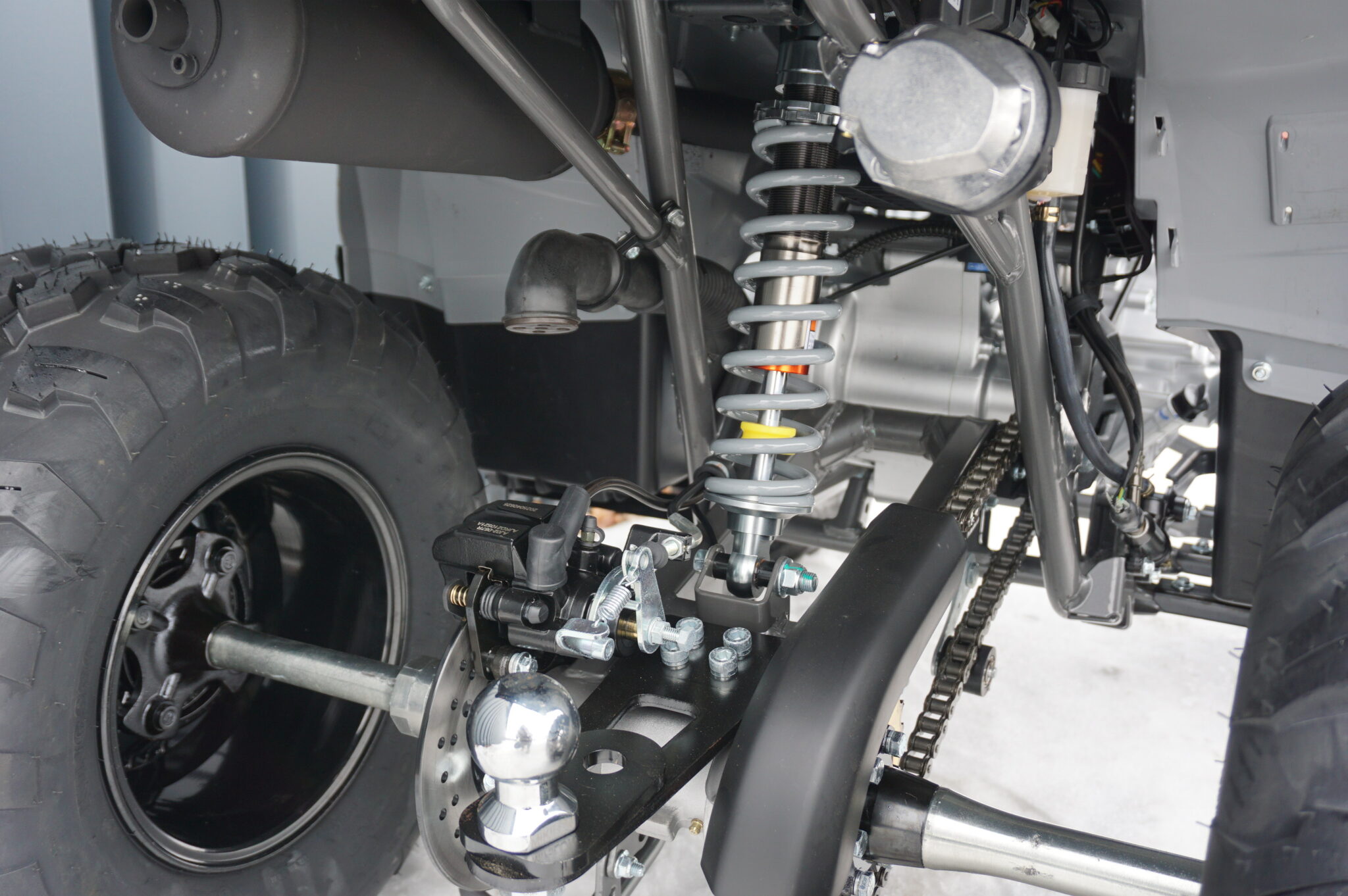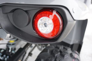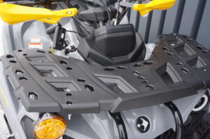 Zawieszenie z dużym skokiem oraz 10-calowe koła z oponami o wysokim profilu umożliwiają płynne pokonywanie nierówności typowych dla terenów wiejskich – polnych dróg, zarośniętych duktów czy leśnych ścieżek. Zabezpieczenia podłogowe chronią nogi operatora przed kamieniami, gałęziami i błotem.