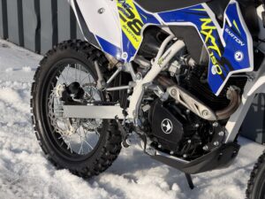 Cały pojazd opiera się na solidnej, stalowej ramie kołyskowej złożonej z dwóch elementów, której konstrukcja nawiązuje do pozostałych modeli serii NXT. Gwarantuje ona dużą stabilność podczas pokonywania przeszkód terenowych i sprawia, że prowadzenie jednośladu, nawet w trudnym terenie, nie sprawia żadnych trudności. Motocykl charakteryzuje się niską masą własną wynoszącą 98 kg, co znacząco ułatwia manewrowanie i kontrolę nad pojazdem. Na korzyść tego pojazdu przemawiają również pięciobiegowa manualna skrzynia biegów, regulowane tylne zawieszenie, dobrze zestrojone zawieszenie zapewniające komfort i pewność prowadzenia, dwa typy rozruchu (nożny i elektryczny) oraz… niska cena. Elektryczny rozruch zwiększa komfort użytkowania po intensywnej jeździe w terenie, natomiast klasyczna kopka stanowi niezawodne rozwiązanie awaryjne.