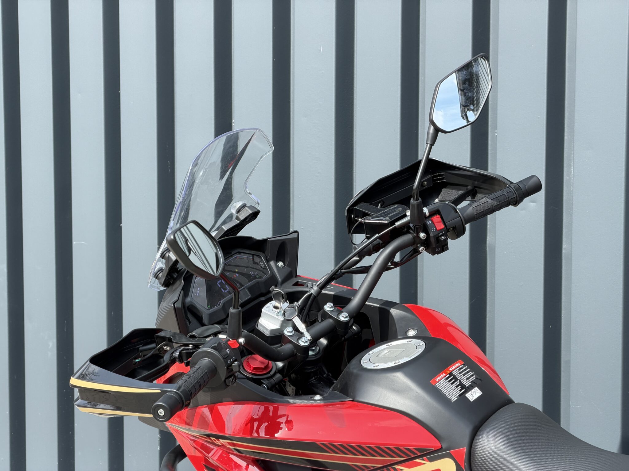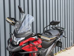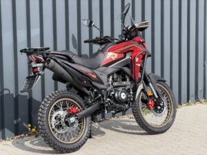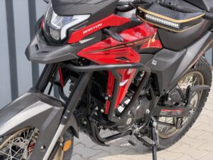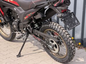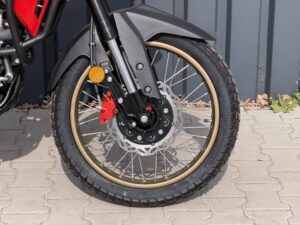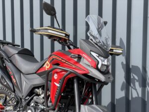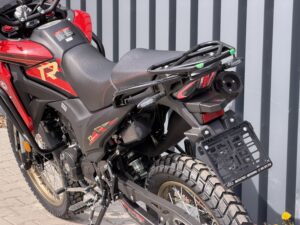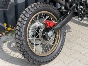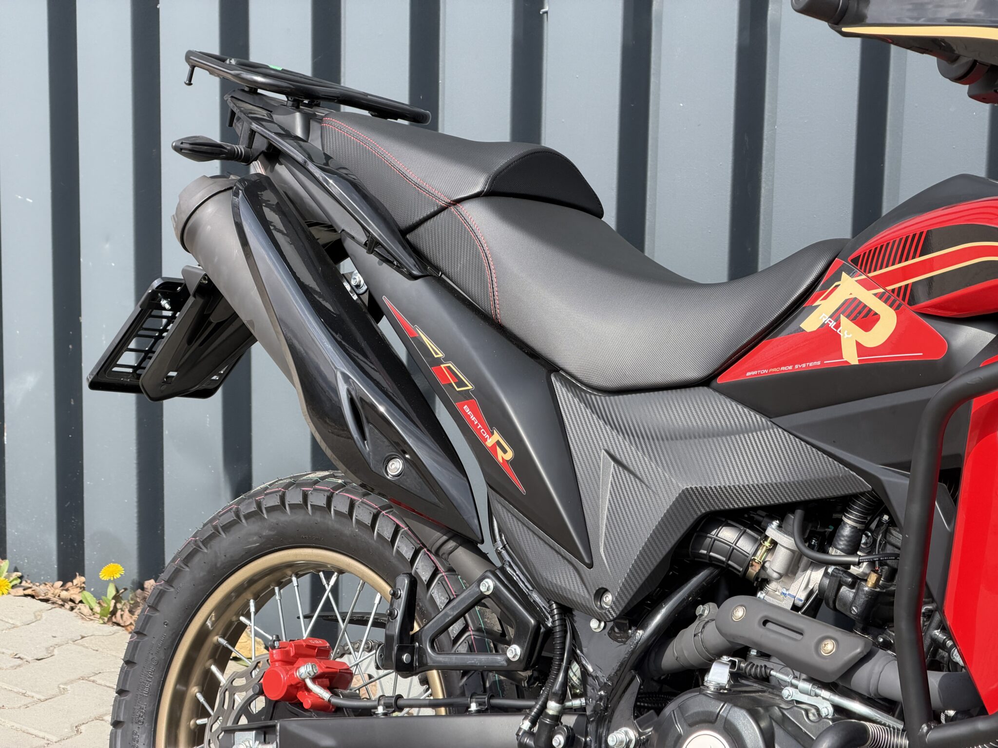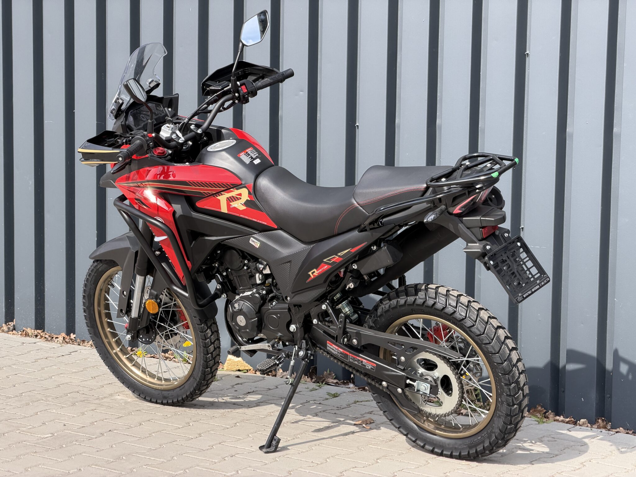 Rally 125 zachwyca agresywną sylwetką i designem inspirowanym motocyklami wyprawowymi. Duże koła, opony z terenowym bieżnikiem, gmole ochronne, szyba, handbary z LED-ami i wysoko poprowadzony błotnik – wszystko tu wygląda poważnie, ale jest dostępne na prawo jazdy kategorii B lub A1.