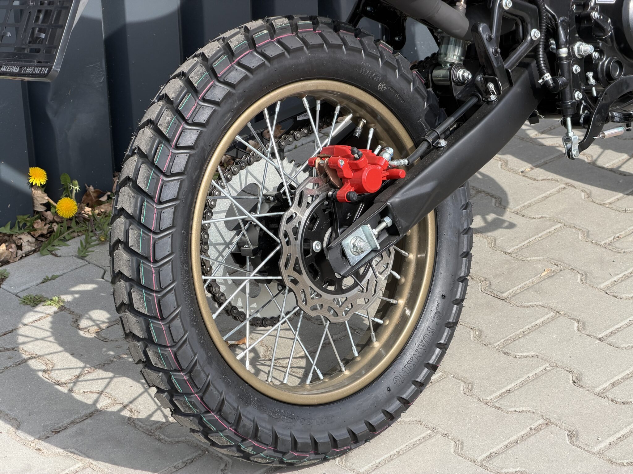 Zawieszenie upside-down, wysoki prześwit (290 mm) i lekka konstrukcja sprawiają, że Rally 125 pewnie radzi sobie z dziurami, krawężnikami, szutrem i leśnymi ścieżkami. To idealny wybór dla tych, którzy chcą zjechać z asfaltu bez zjeżdżania z legalnej drogi.
