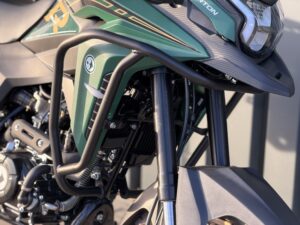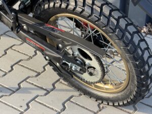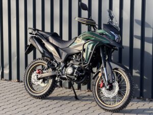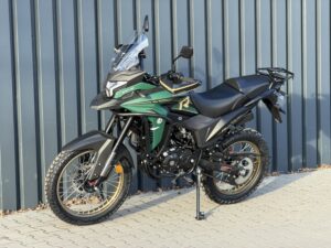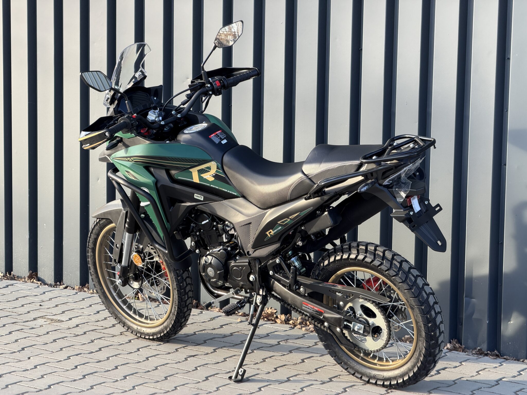 Rally 125 zachwyca agresywną sylwetką i designem inspirowanym motocyklami wyprawowymi. Duże koła, opony z terenowym bieżnikiem, gmole ochronne, szyba, handbary z LED-ami i wysoko poprowadzony błotnik – wszystko tu wygląda poważnie, ale jest dostępne na prawo jazdy kategorii B lub A1.