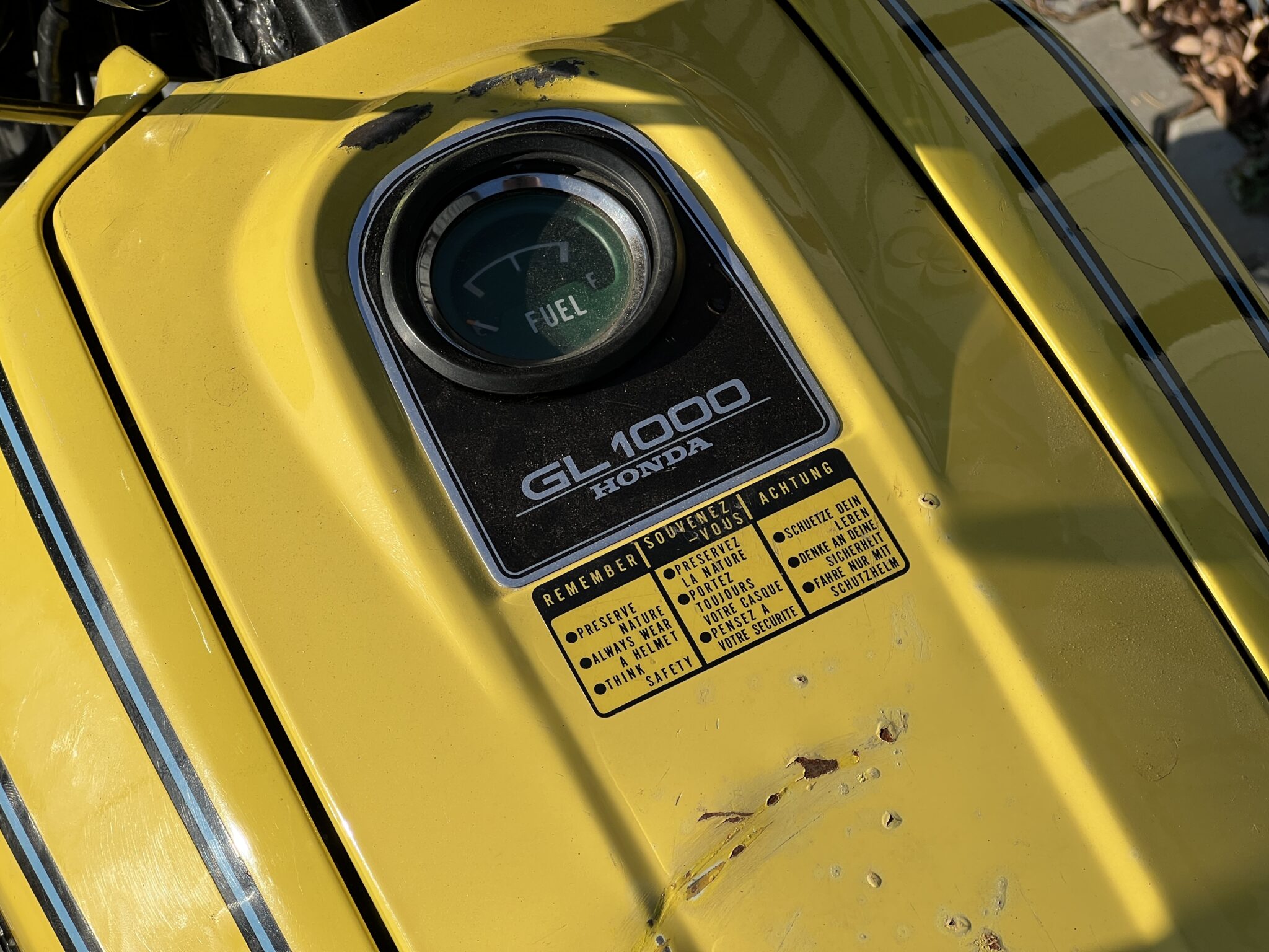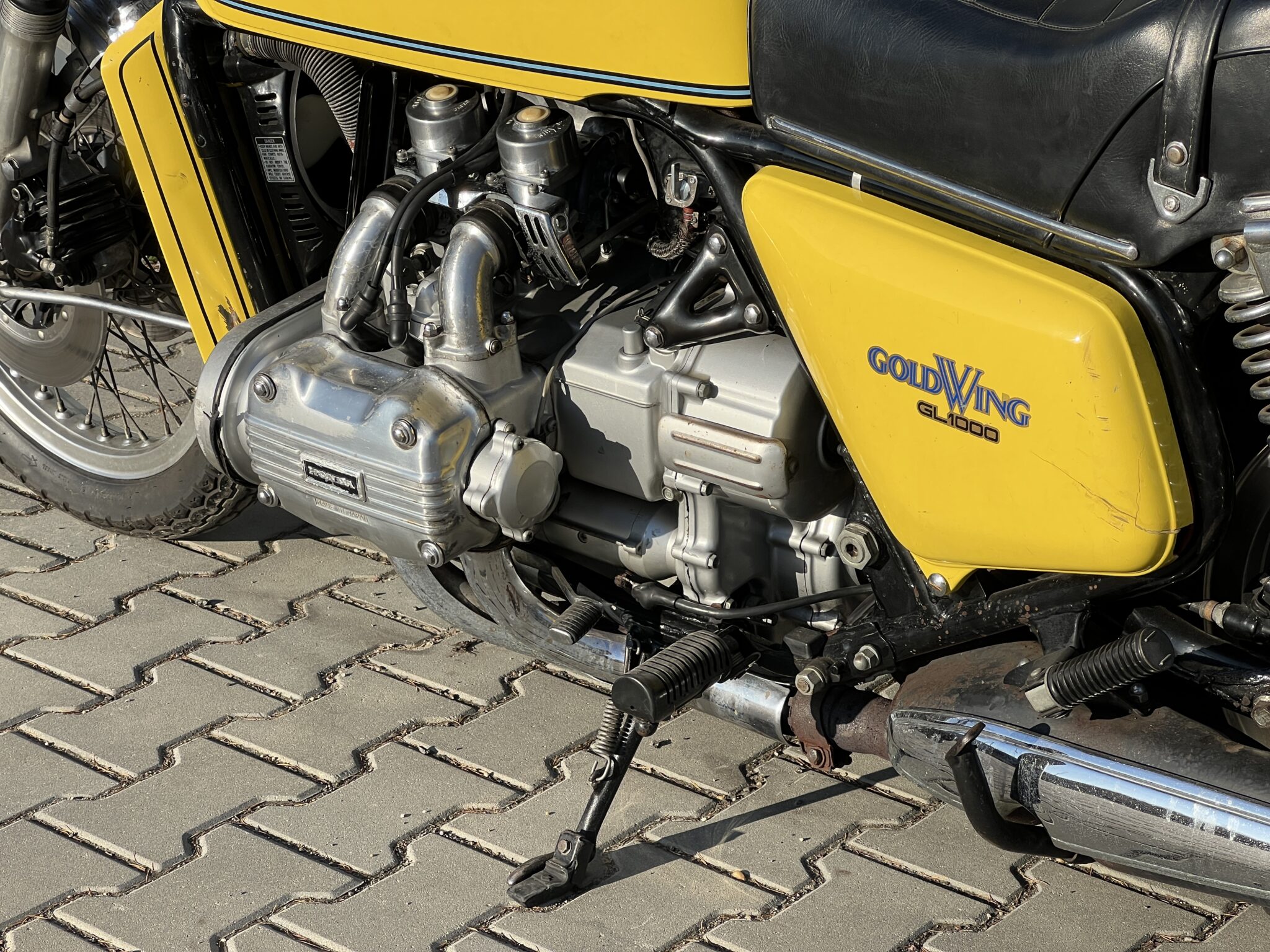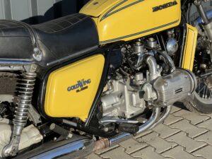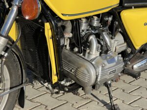 Motocykl ma swoje lata / prawie 50 lat / a tylko niewiele ponad 26 tys km przebiegu, zatem wymieniliśmy paski rozrządu, zostały wyczyszczone i wyregulowane gaźniki, wyczyszczony zbiornik paliwa – to pozwoliło na odpalenie tego motocykla, by upewnić się, że silnik jest sprawny, biegi działają dobrze a motocykl jeździ bardzo sprawnie. Przelot 49-cio letnim Gold Wing’iem po autostradzie to naprawdę fajne doświadczenie, motocykl prowadzi się bardzo lekko i precyzyjne – to jednak Honda Gold Wing !