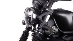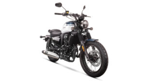 Zawieszenie oparto na klasycznym widelcu teleskopowym z przodu oraz dwóch amortyzatorach sprężynowych z tyłu – to nie tylko kwestia komfortu, ale również spójności projektu ze stylistyką retro. Skrzynia biegów