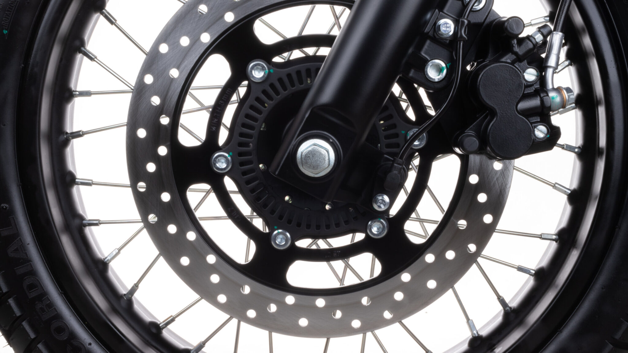 Motocykl wyposażono w tarczowe hamulce z systemem ABS zarówno na przednim, jak i tylnym kole. Szprychowe koła (18” z przodu i 15” z tyłu) w połączeniu oponami o klasycznych wymiarach gwarantują dobrą przyczepność. Zbiornik paliwa mieści 15 litrów, co przekłada się na spory zasięg i rzadką potrzebę tankowania.