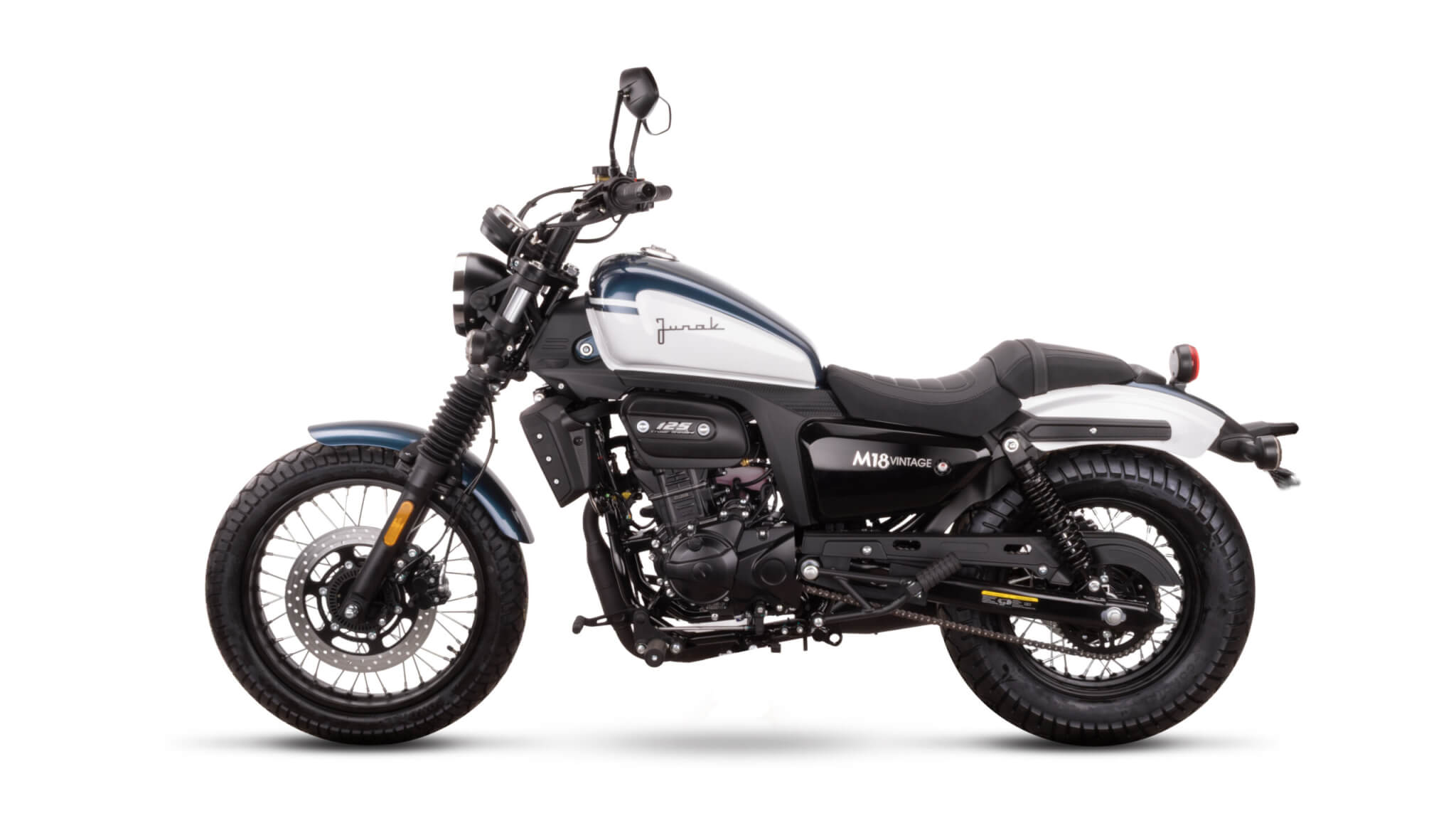 Junak M18 Vintage 125 to motocykl, który śmiało sięga do estetyki klasycznych cruiserów i bobberów, czerpiąc z niej to, co najbardziej charakterystyczne – od nisko poprowadzonej kanapy po eleganckie chromowane detale. Mimo nostalgicznych odniesień, całość prezentuje się jako świeża i nowoczesna interpretacja stylu retro, stworzona z myślą o współczesnych użytkownikach.