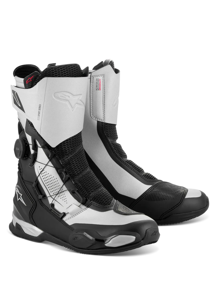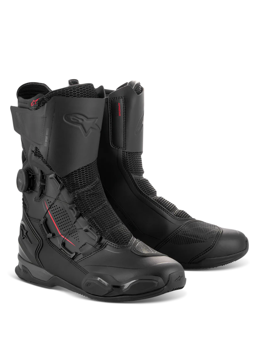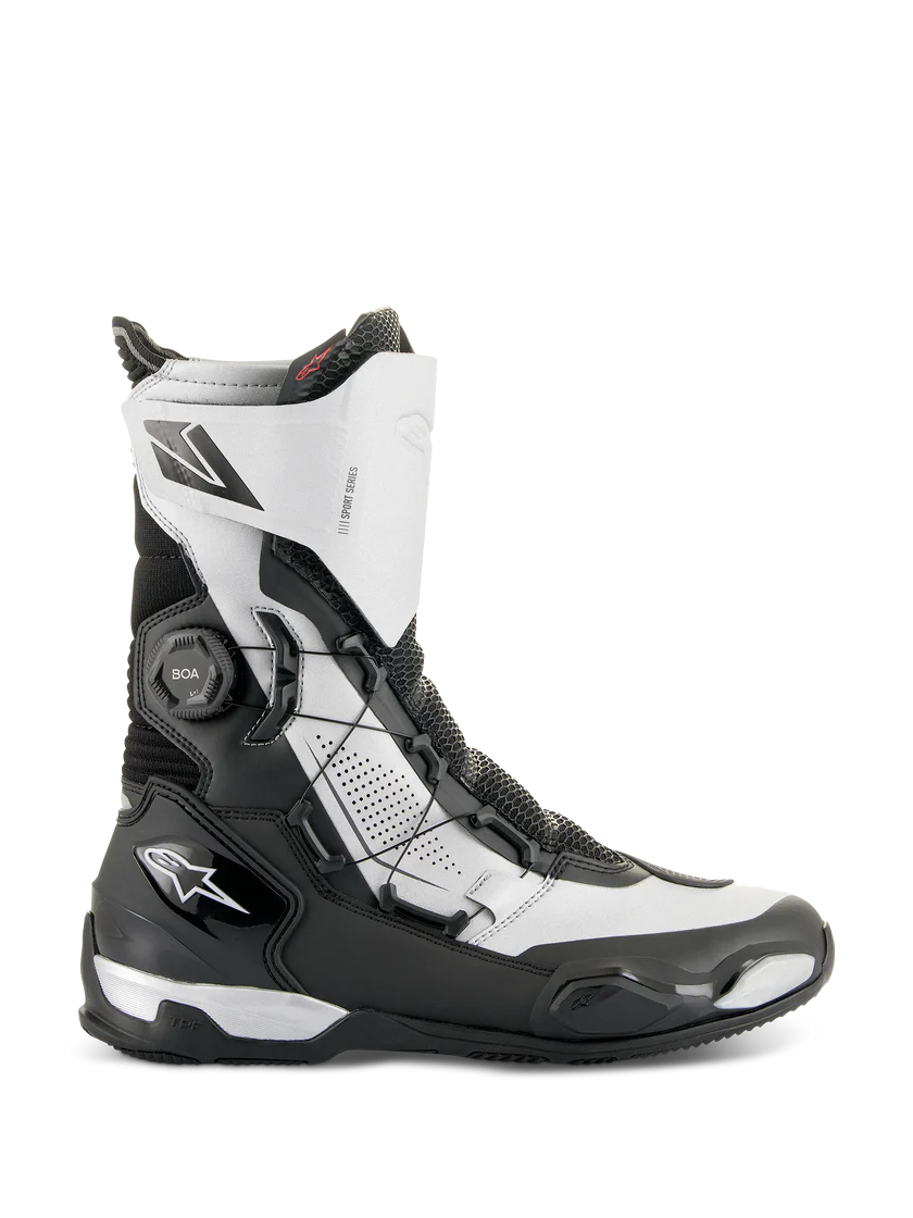 Buty SP-X BOA to eleganckie buty sportowe zaprojektowane tak, aby pasowały pod techniczne spodnie motocyklowe i zapewniały doskonałą zdolność chodzenia. Optymalizowane dla motocyklistów sportowych i turystycznych, buty SP-X BOA to kompaktowe, średniej wysokości buty z najwyższym poziomem ochrony i komfortu zarówno na motocyklu, jak i poza nim. Cholewka jest wykonana z połączenia zaawansowanego mikrofibry, ultra-miękkiego materiału Rideknit® i dzianinowej siatki, plus bezszwowych części termo-zgrzewanych. Dolna część zawiera TPU zapiętek, ślizgacz na palce oraz ramę ochronną Alpinestars TPF Transversal Protection Frame na podeszwie, co zapewnia wysoki poziom ochrony przed uderzeniami oraz wszelkimi zgięciami lub skręceniami. Dodatkowo, podeszwa ma zupełnie nowy design z asymetrycznym tylnym obcasem, który ułatwia naturalny krok motocyklisty i promuje stabilność poza motocyklem. Dla ochrony, buty SP-X BOA mają zintegrowany ochraniacz na piszczel, dwuwarstwowe dyski na kostki, a także wzmocnienie TPU na podkładkę zmiany biegów i ślizgacz na palce. Dla komfortu, dzianinowe obszary na przednich i tylnych punktach zgięcia oferują dużą swobodę ruchu, podczas gdy śródpodeszwa PU z zintegrowanym podwójnym amortyzującym związkiem na pięcie i wyjmowaną wkładką OrthoLite® zapewniają doskonały komfort chodzenia. Wkładanie i zdejmowanie ułatwia boczny zamek błyskawiczny w połączeniu z systemem szybkiego sznurowania BOA, co zapewnia kompaktowe i precyzyjne zamknięcie. Buty SP-X BOA są idealne dla tych motocyklistów sportowych, którzy szukają ochrony i pokrycia, ale bez pełnych butów wyścigowych, oraz wyglądu nad spodniami.