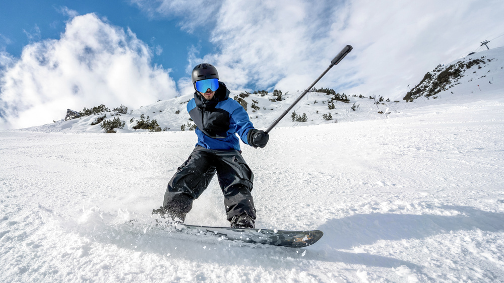 Uchwyć widok z perspektywy trzeciej osoby niczym z drona, który jest niemożliwy do osiągnięcia w przypadku innych kamer sportowych. Invisible Selfie Stick (brak w zestawie) usuwa kijek z nagrania, tworząc efekt ujęcia z lotu ptaka